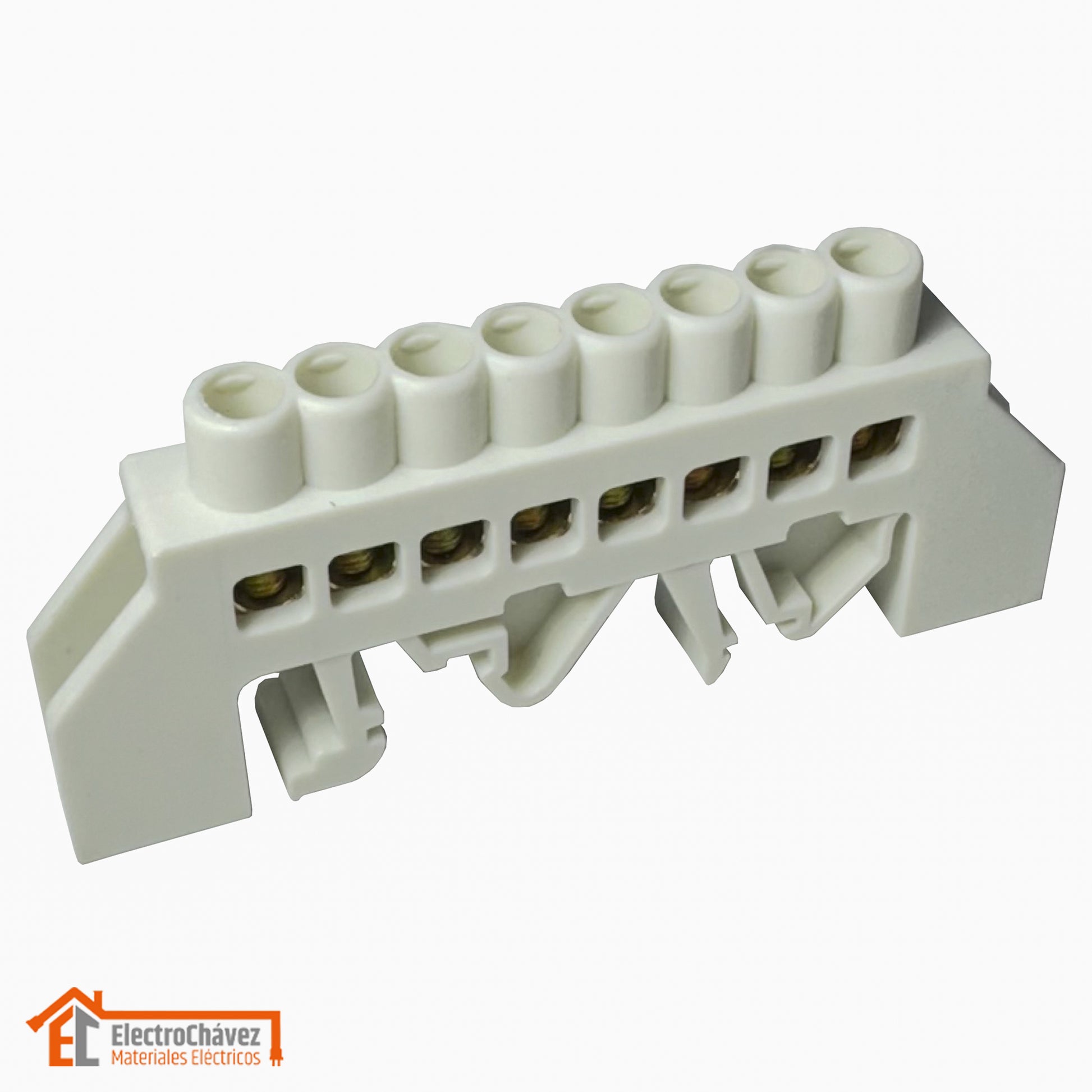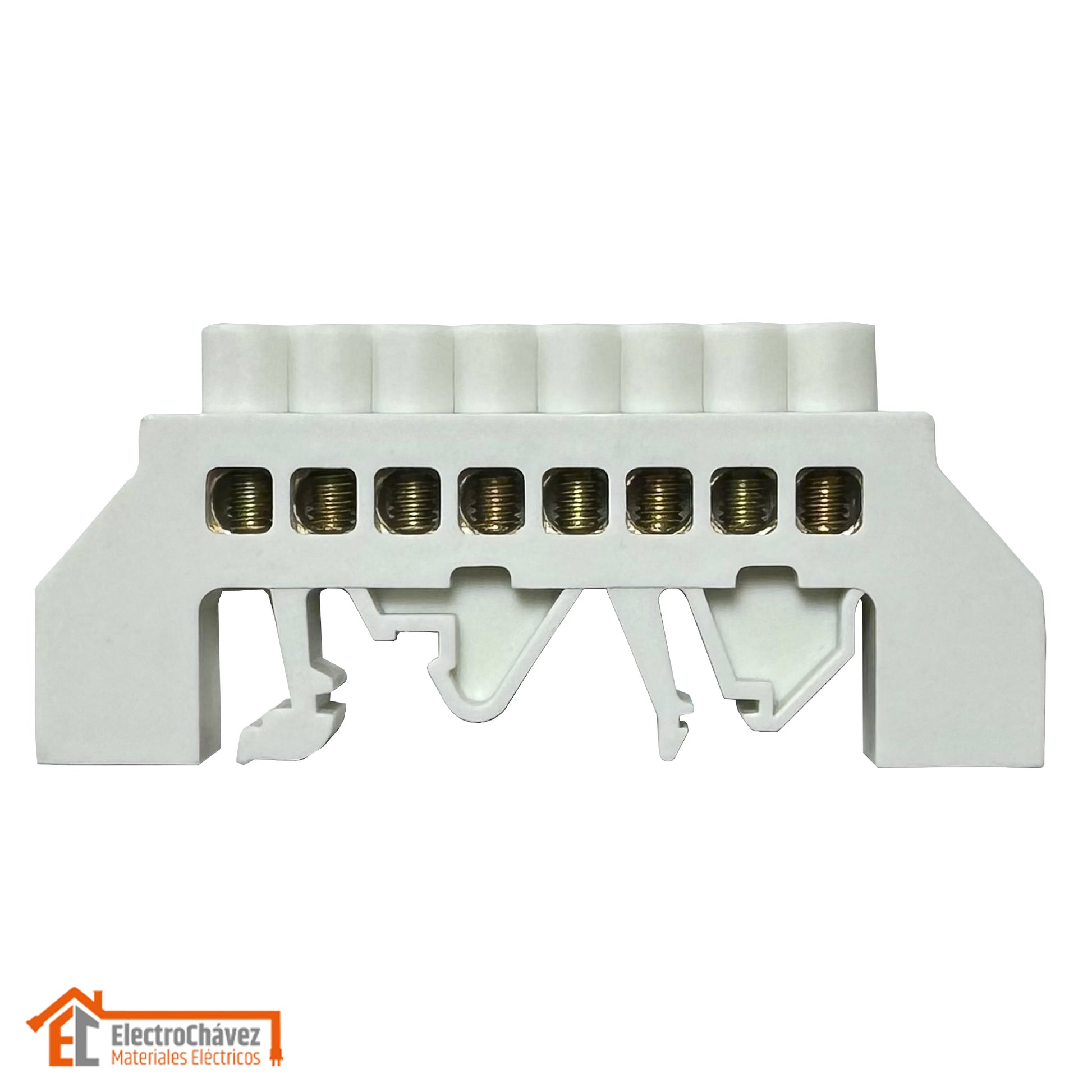 Barra Regleta Conexión Bronce Aislado 8P Riel Din Blanco