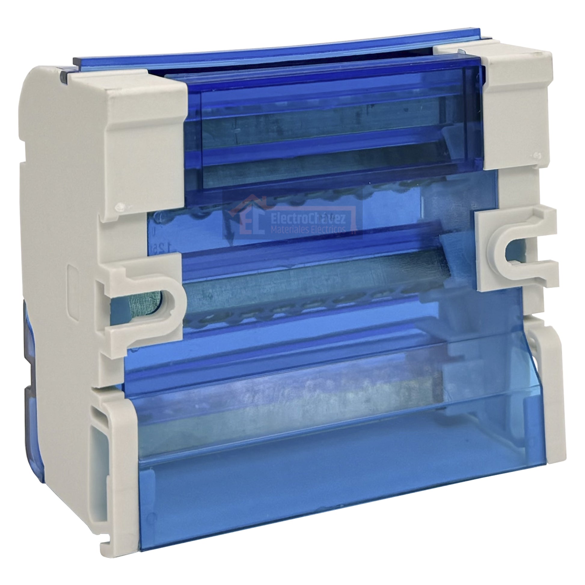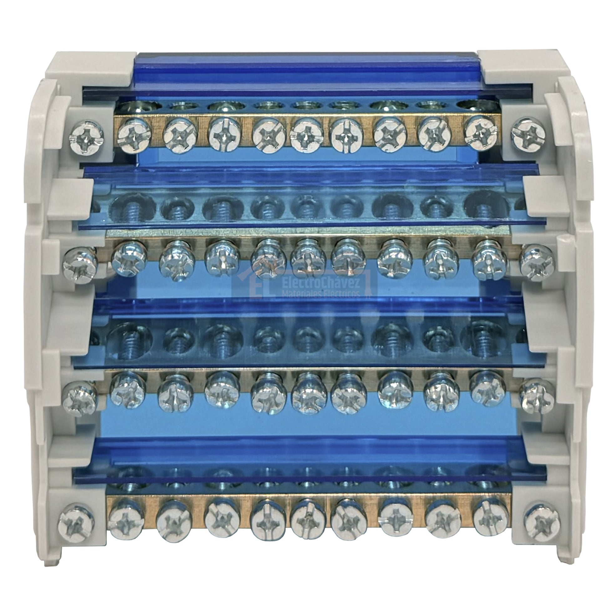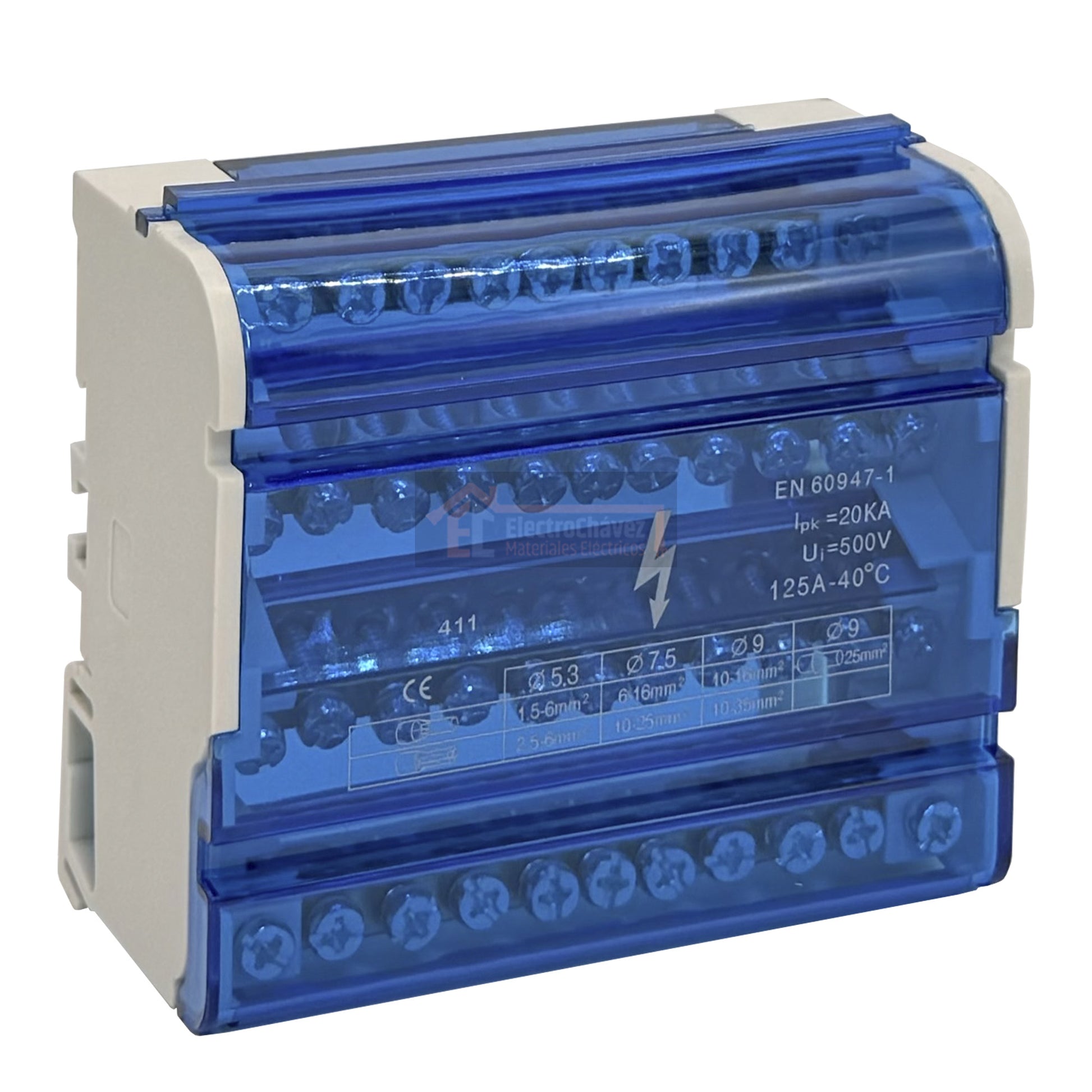 Accesorio necesario al electrificar un tablero. Se compone de un cuerpo en tecnopolímero aislante donde están montadas las barras de bronce perforadas para realizar las conexiones de fase y neutro. Tiene una cubierta transparente para tener visión de las conexiones. Se utilizan para la alimentación, derivación y distribución de líneas de fases, neutros o tierras dentro de un tablero eléctrico.