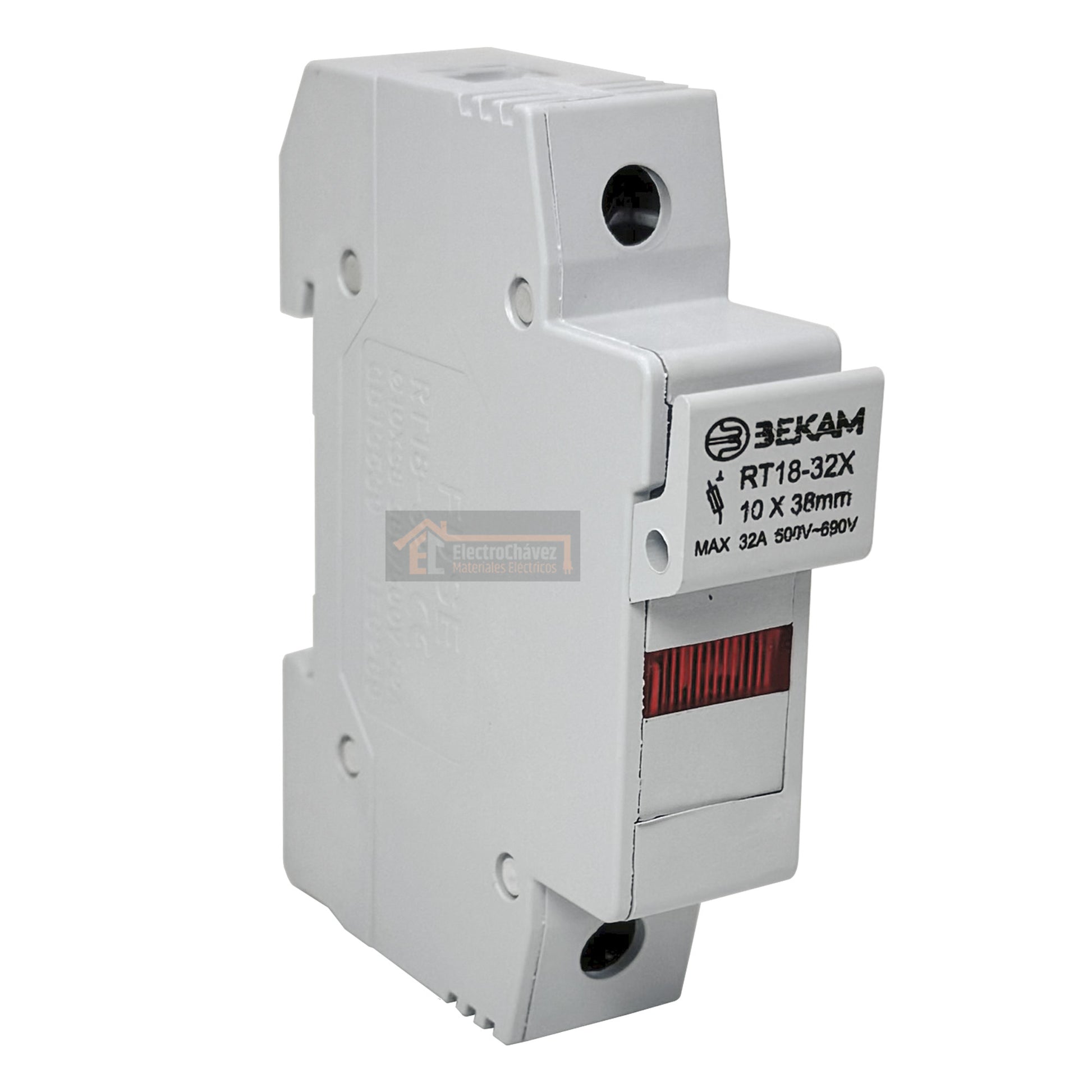Base Portafusible con Luz Piloto 1p 10x38mm 32a Riel Din (Sin Fusible)
