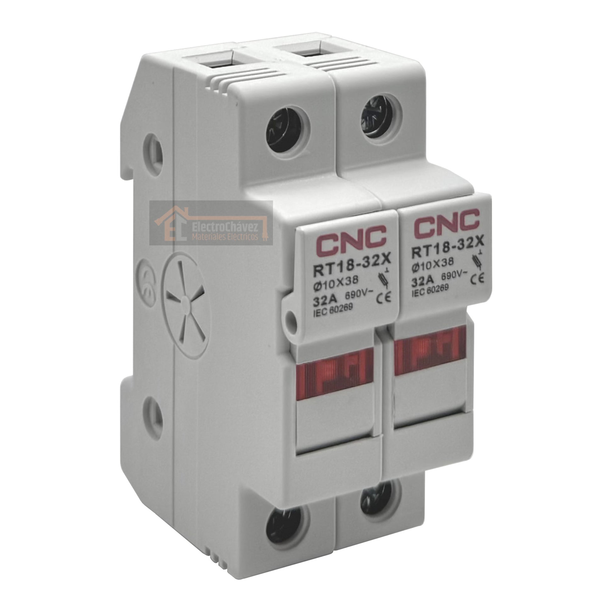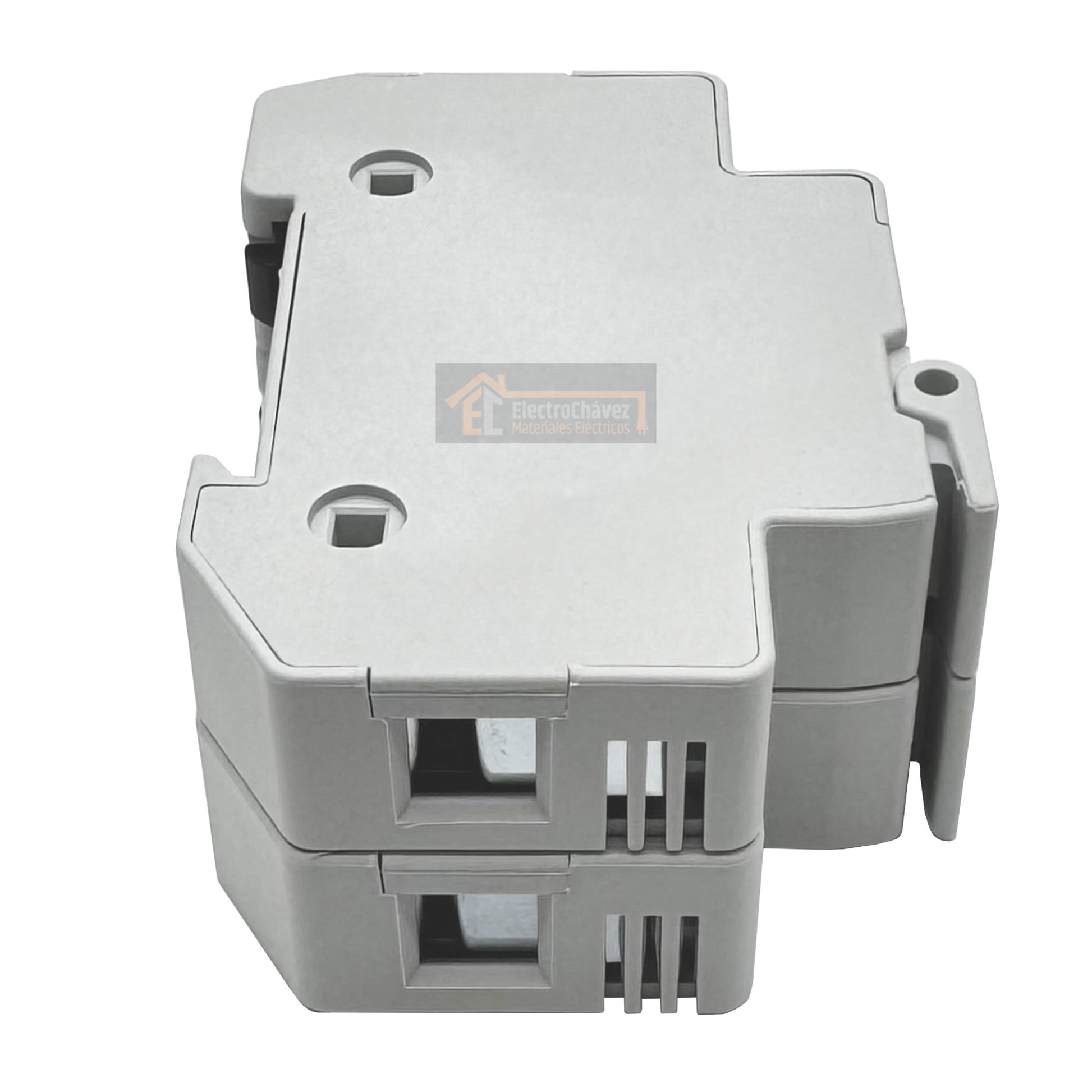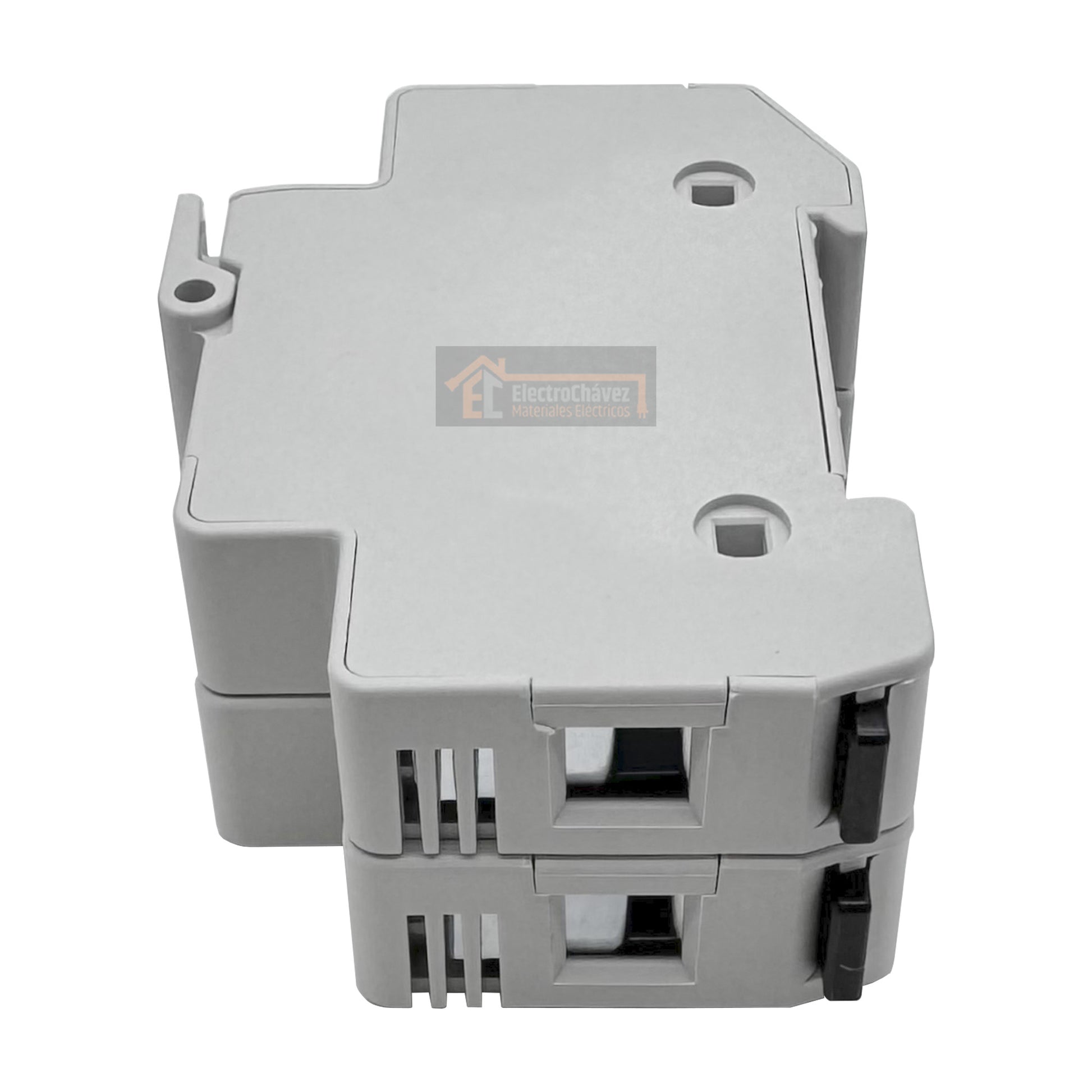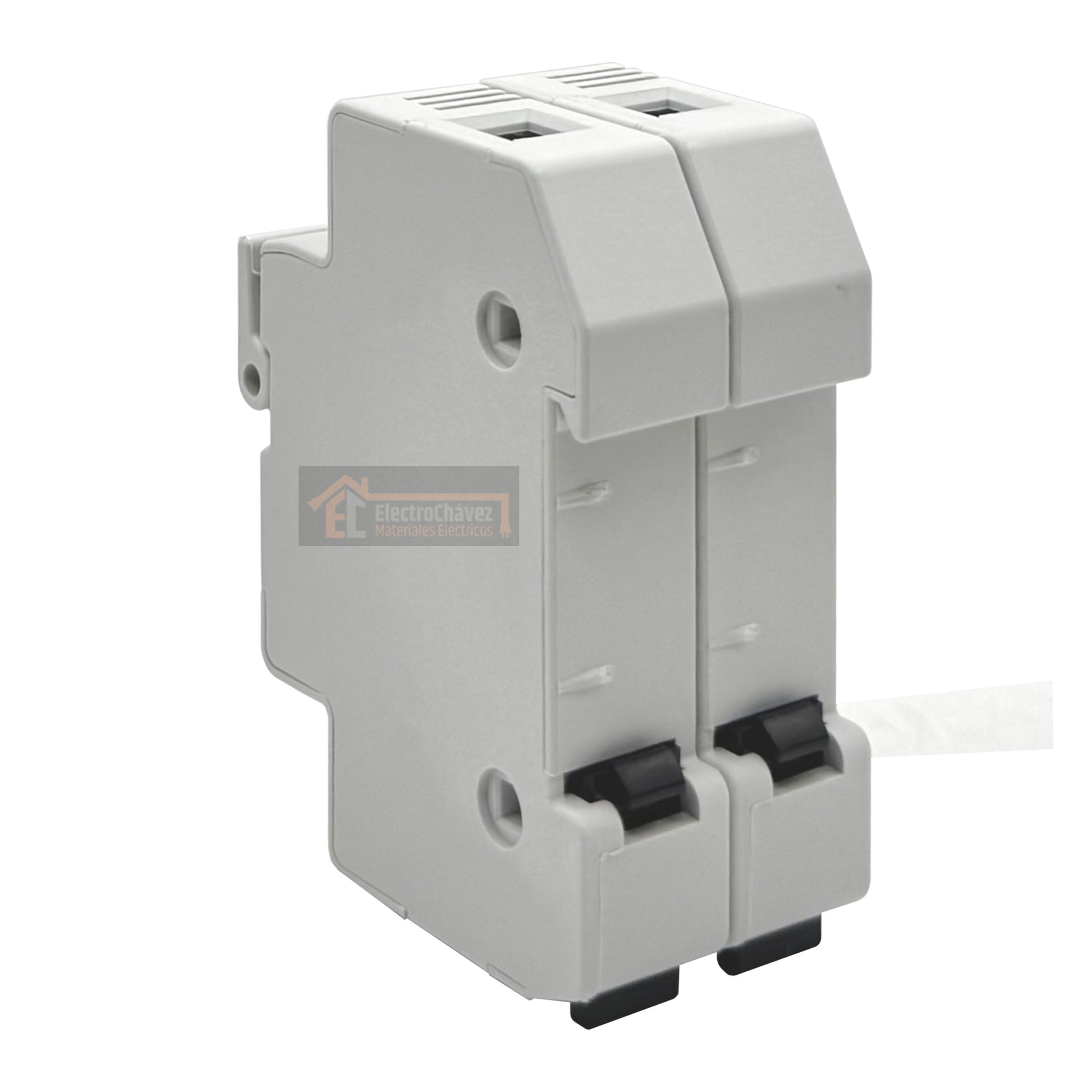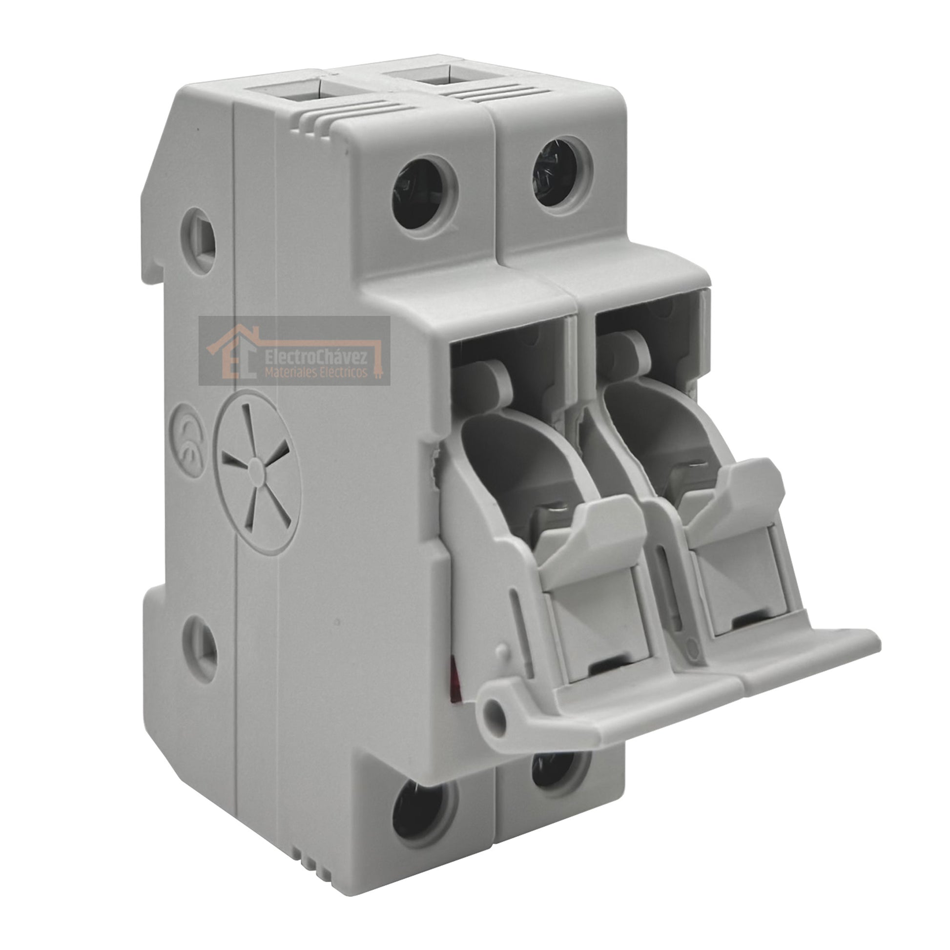 Base Portafusible Doble con Luz Piloto y Alarma 2p 10x38mm 32a Riel Din (Sin Fusible)