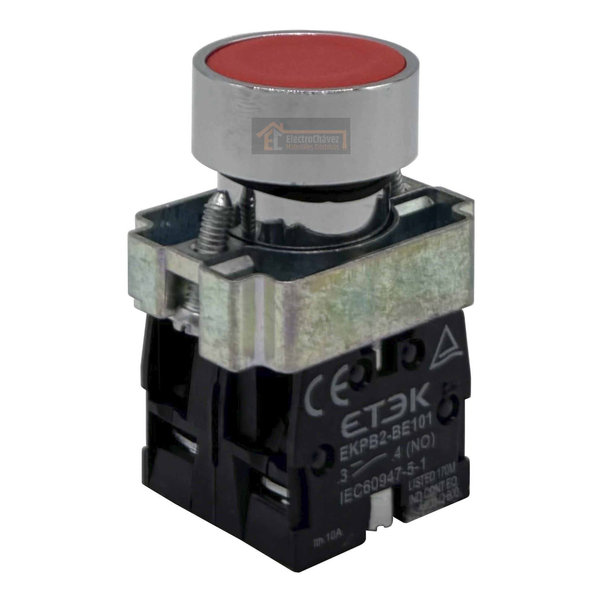 Botón Pulsador Metálico (1no+1nc) 22mm Rojo