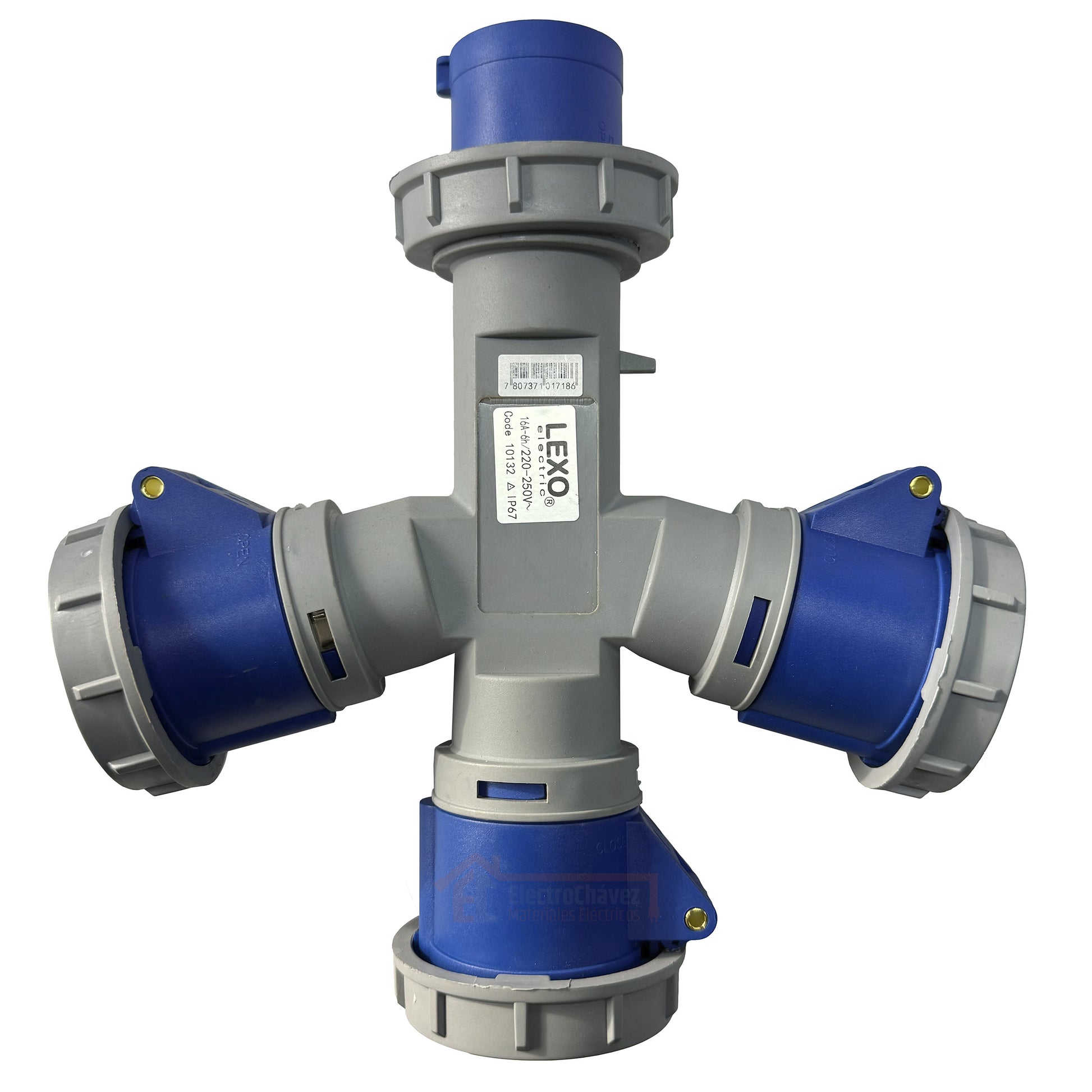 Enchufe Derivación Pulpo Industrial 3 Hembras 16a 2p+t 220v Ip67 - Lexo