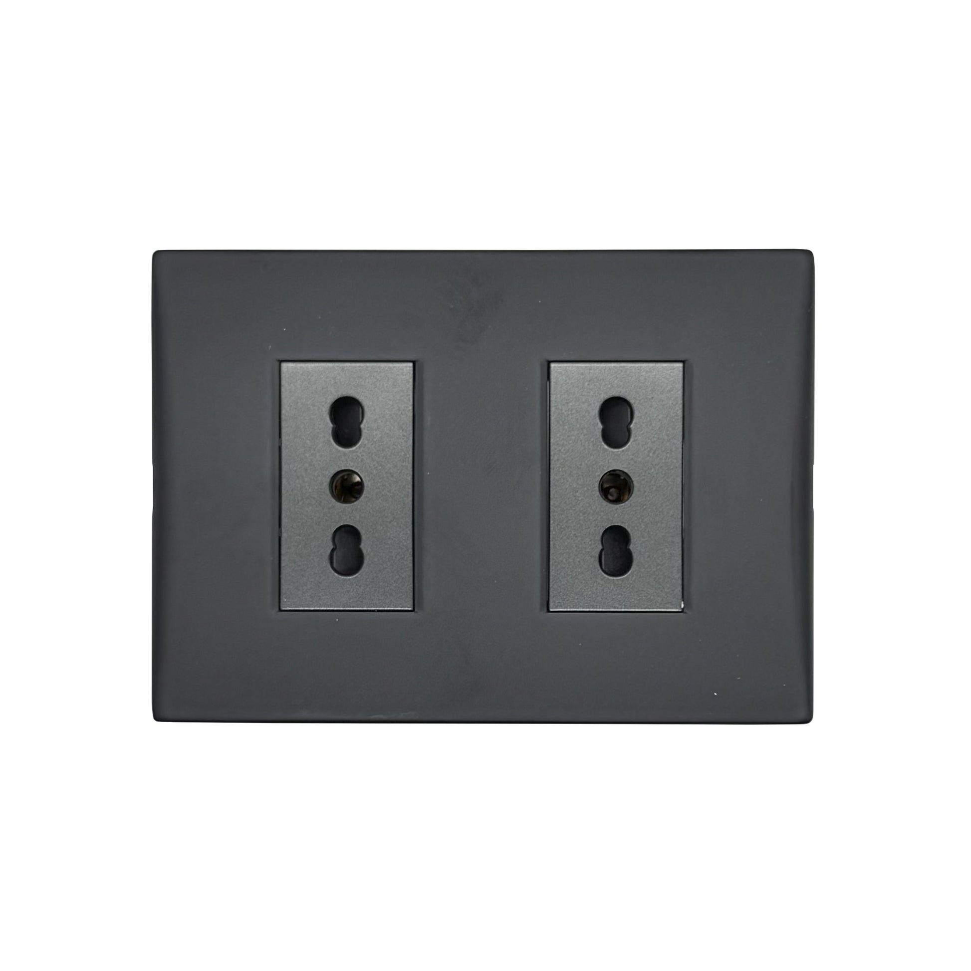 Enchufe Embutido Doble 2p+t 16a Black Andes Armado Metal - Lexo