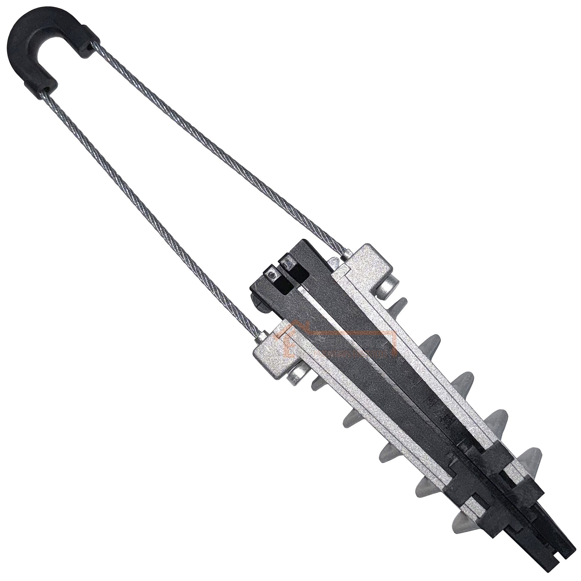 Están diseñadas para tensar cables preensamblados de aluminio de baja tensión compactos. La cubierta esta compuesta por nylon, fibra de vidrio y horquilla de sujeción compuesta de acero zincado.