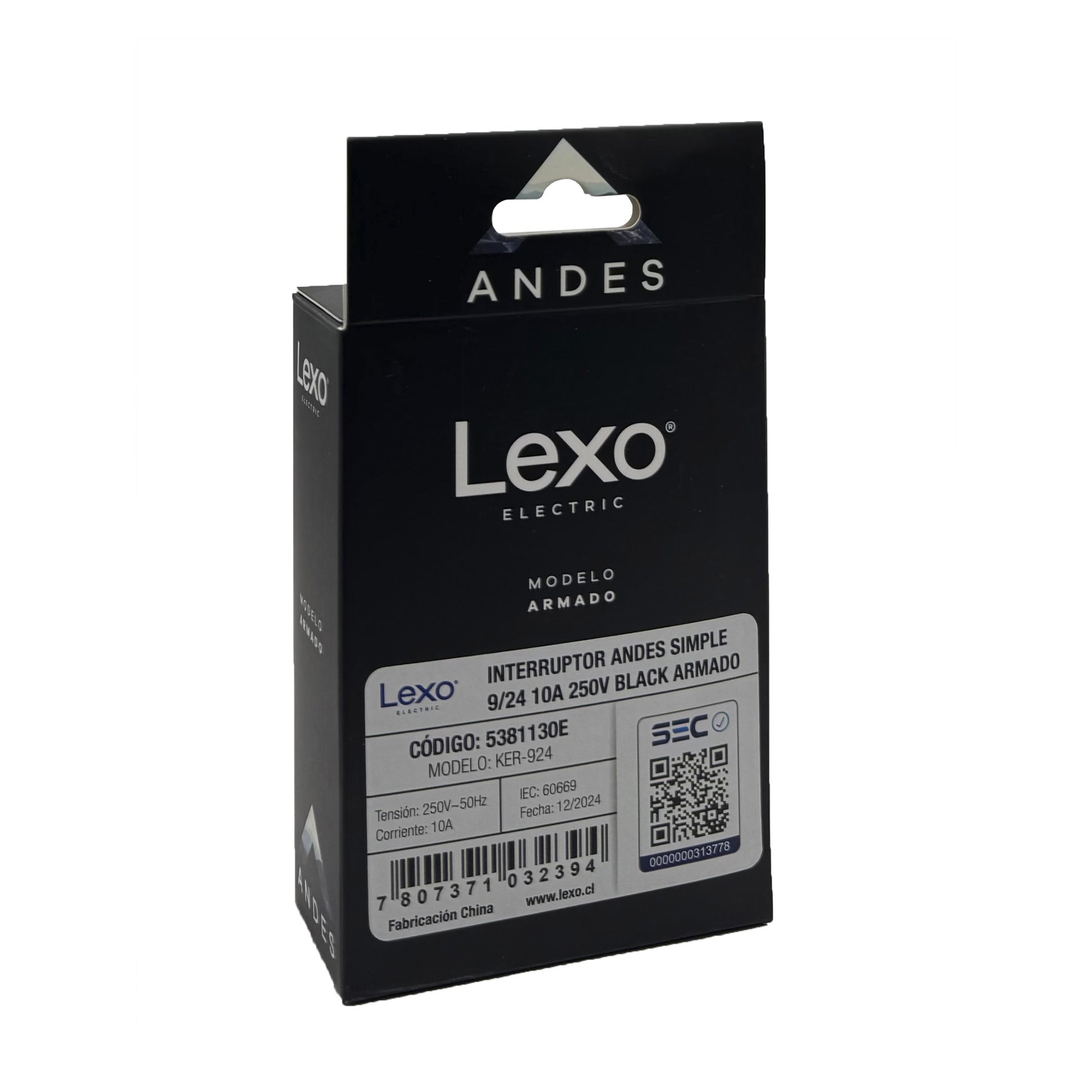 Interruptor Embutido Simple 9/24 10a Black Andes Armado Metal - Lexo